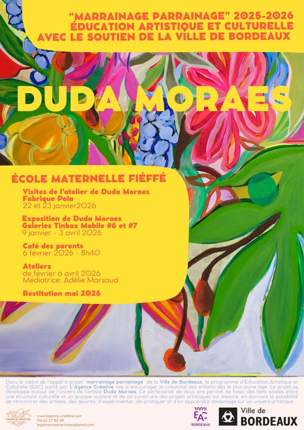 - Exposition de Duda Moraes Galeries Tinbox Mobile #6 et #7 du 9 janvier au 3 avril 2026Ateliers
